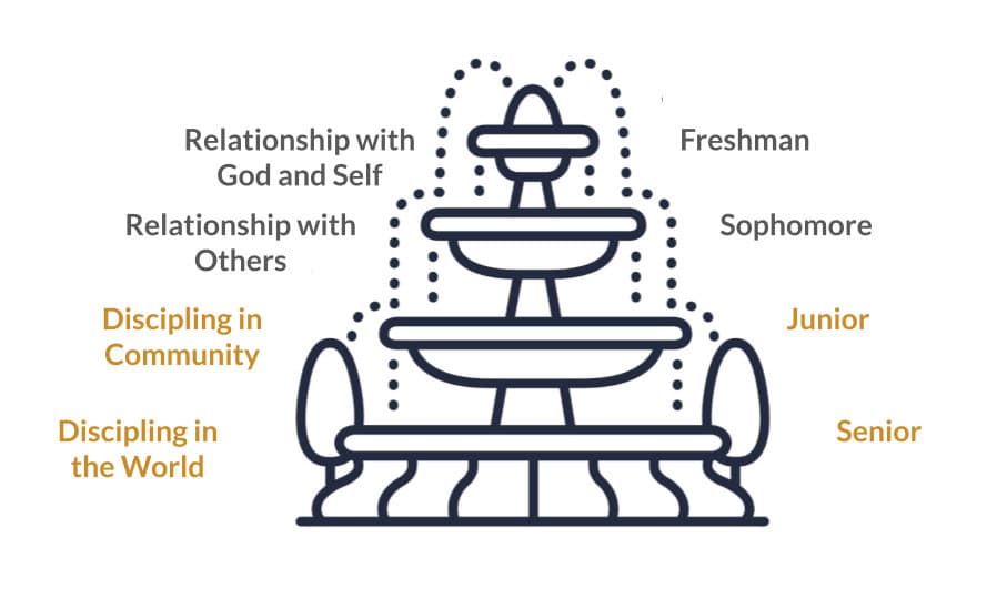 Weekly Meeting: Every student joins a same-gender group of 3–5 peers that meets each week for discipleship, prayer, and encouragement.